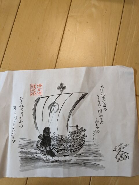 この神社では新年0時になると宝船と言う紙が貰えるのだ。