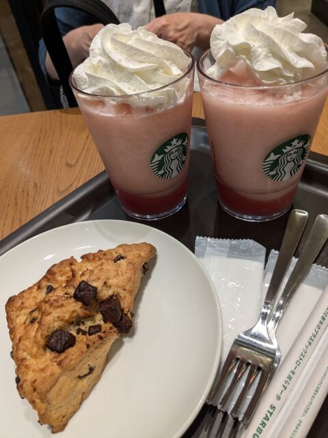 love&PEACHフラペチーノ2個とチョコレートチャンクスコーン1個をオーダー。