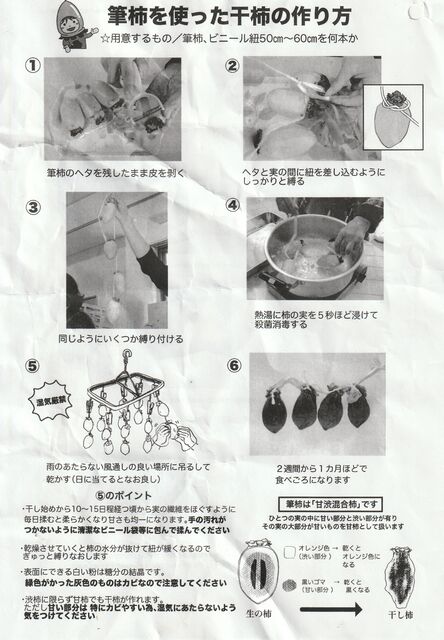 筆柿を買うのに直売コナーで併せて貰った『筆柿を使った干柿の作り方』を参考に作業を進める。