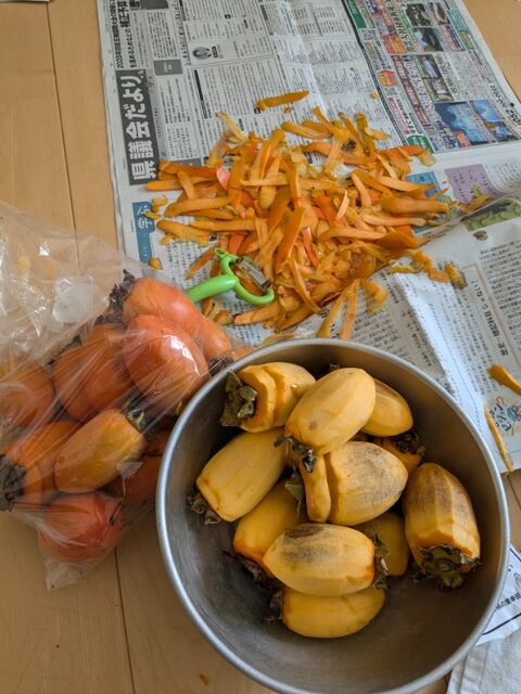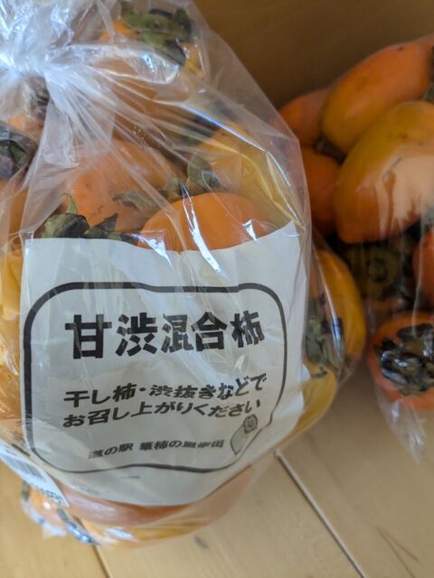 昨日の朝9時に道の駅筆柿の里幸田に行って『甘渋混合柿(1袋500円)』を二袋を買て来た。正月に遊びに来る娘夫婦と孫娘に味わせる為に、筆柿の干柿を作ろうと思ってである。