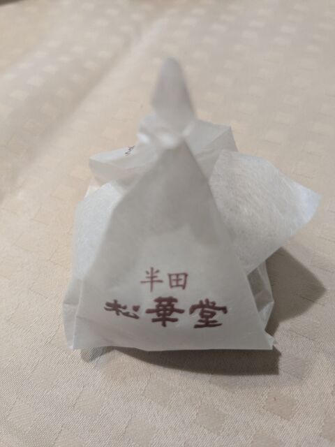 『栗きんとん』だから岐阜県中津川の川上屋と同じ巾着搾りの形をしているが、物は別物であった。松華堂の栗きんとんは、中に甘い餡が入っている。