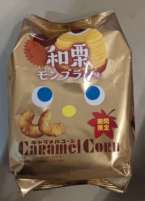 東ハト『和栗モンブラン・キャラメルコーン』が期間限定で販売されている。確かに栗モンブランの風味がする。