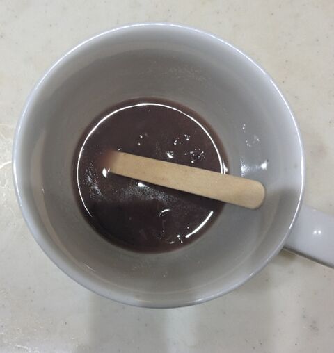 あずきバーをスティックつきのままマグカップに入れて、レンジで600W2分加熱し、スティックで軽くかき混ぜたら完成です。