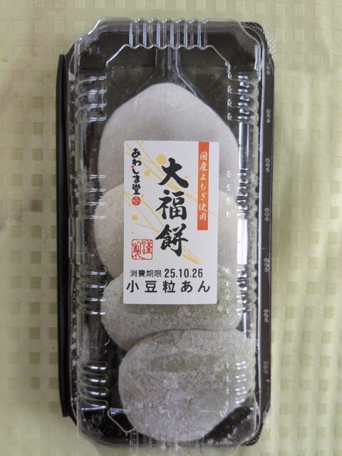 途端にあわしま堂の酒まんじゅうが食べたくなってスーパードミーに行って探したが見つからなかった。『大福餅』を見つけた。
