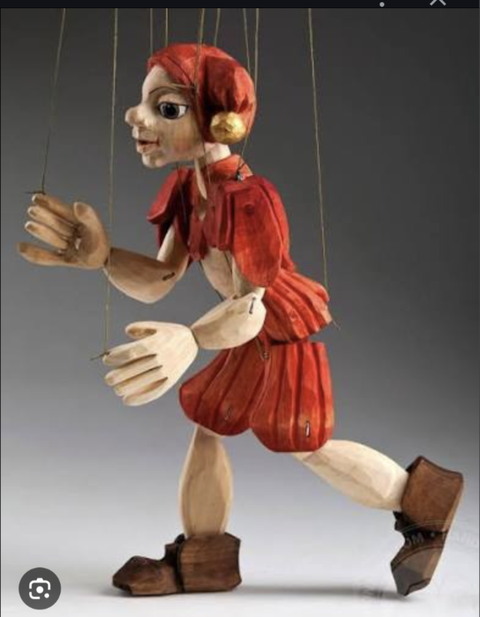 『ひょっこりひょうたん島』で棒で支えられた人形や文楽のような幾人で操作する安定した動きでなく、ブラブラと不安定な動きをして機敏な動きが出来ないマリオネットである。親父は…。