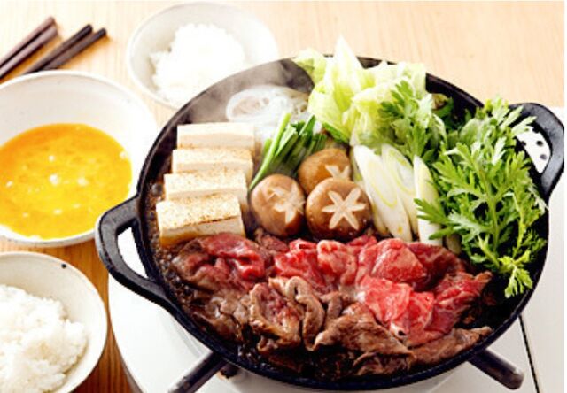 煮えた牛肉を溶き卵に潜らせて、口に入れると絶品である。