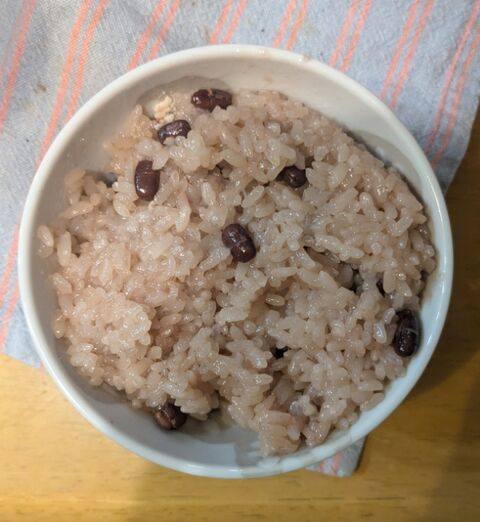 妻が炊いた赤飯は義母の誕生日を祝うものであるが、偶然にも小正月の小豆食にもなった。